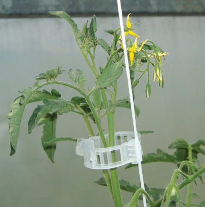 Figure 2. Plastic clips are used to attach tomato vines to support strings.