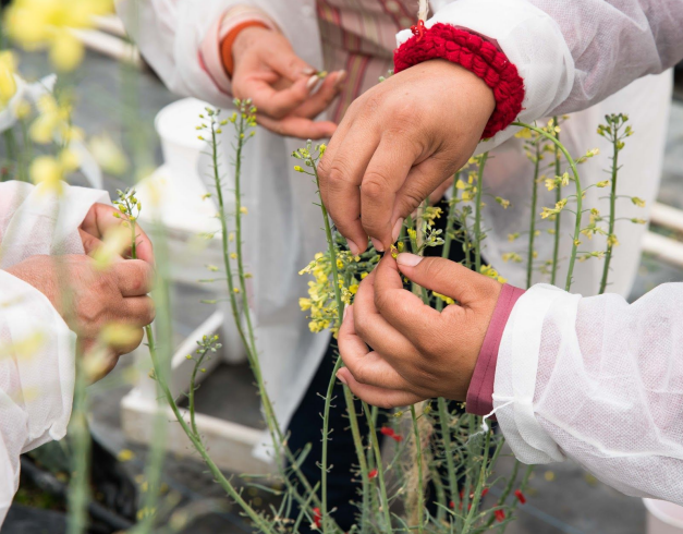 To do this, our team takes pollen from the anthers (the male part of the plant) of the first plant and puts it into a petri dish. Next, they remove the pollen from the anthers of the second plant to prevent the plant from self-pollinating. They take the anthers from the first plant and place it on the stigma (the female part of the plant) of the second plant. The pollen will go through the stigma for fertilization, causing the fruit to form. Once the plant grows to maturity, we’ll take the seeds from the fruit, which will be the hybrid seed.