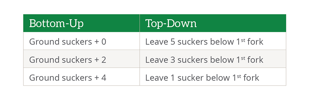 You’re wondering, exactly how many suckers do I prune? The short answer is to prune the groundsuckers (if any), plus two.