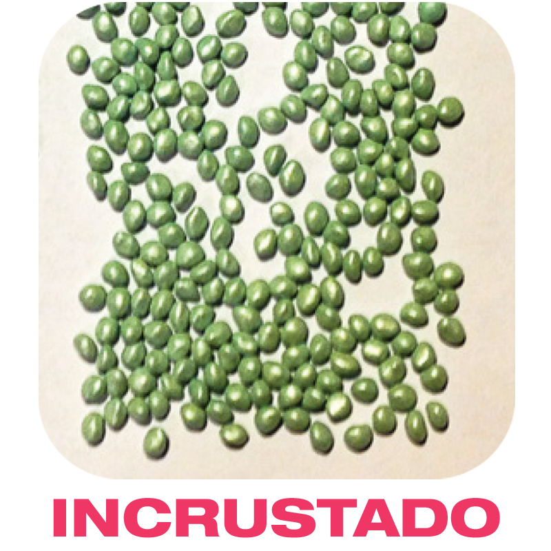 As incrustações são um pouco mais espessas, tornando a semente mais uniforme em formato, mais esférica e um pouco mais pesada. Sementes incrustadas são mais fáceis de plantar do que sementes não revestidas ao usar uma semeadora a vácuo. As sementes peletizadas têm os revestimentos mais espessos, são mais uniformes em tamanho e formato e são mais pesadas. As sementes peletizadas são mais fáceis de manusear e plantar quando se usam semeadoras de correia ou a vácuo.