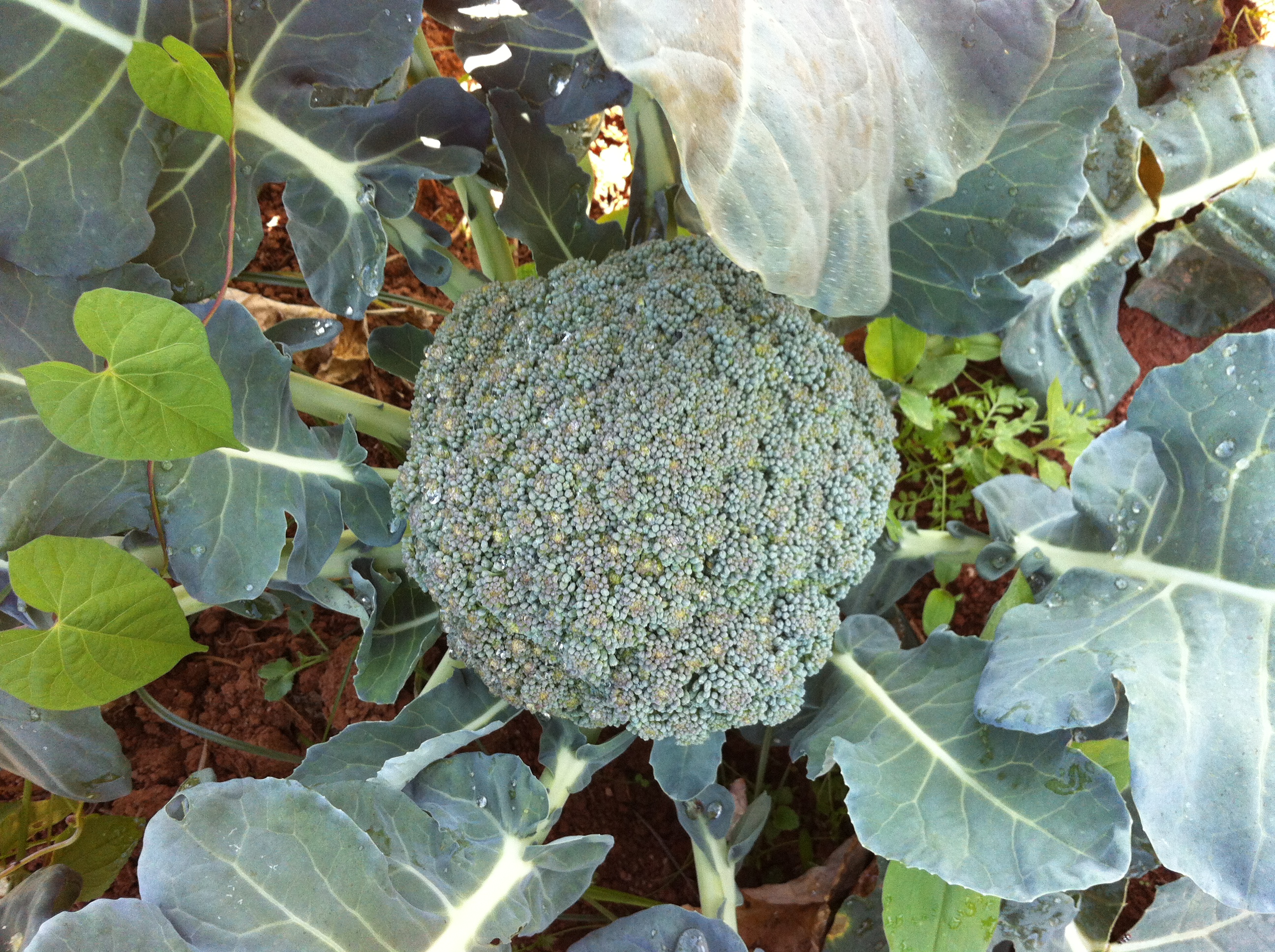 Brócolis vigoroso com bom enfolhamento e muito uniforme.