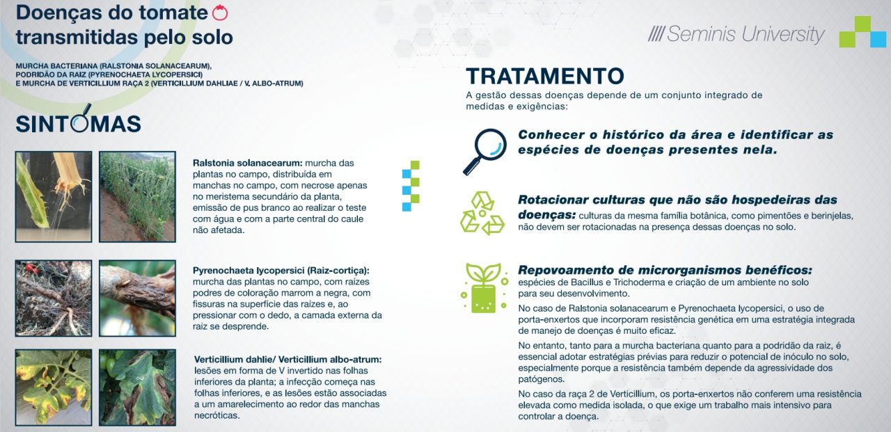 No caso de Ralstonia solanacearum e Pyrenochaeta lycopersici, o uso de porta-enxertos que incorporam resistência genética em uma estratégia integrada de manejo de doenças é muito eficaz.
