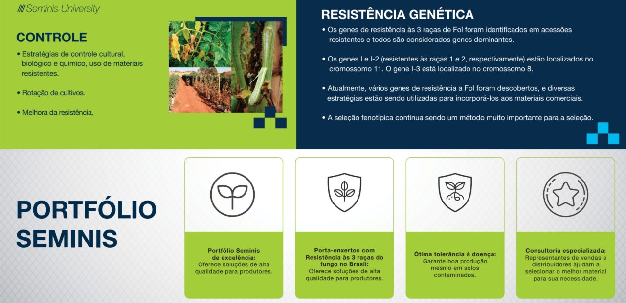 - Porta-enxertos resistentes às três raças do fungo, permitindo boa produtividade mesmo em solos contaminados.