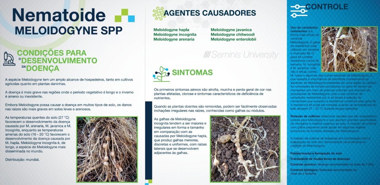 Observação: Os guias de doenças Seminis fornecem descrições e imagens das doenças e condições mais comuns em todo o mundo, por espécie. Para cada doença e condição você encontrará o nome comum, a causa, onde ocorre, os sintomas, as condições necessárias para o seu desenvolvimento e as medidas de controle.