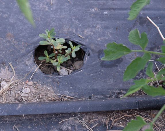 Nessas áreas, o uso de herbicidas pré-emergentes, antes da instalação do plástico é uma boa prática; a aplicação de herbicida na área total, após a instalação do mulching não é uma prática recomendada, uma vez que a chuva ou a irrigação podem lavar o produto e levar para áreas onde pode interferir no bom desenvolvimento da cultura principal.1,2 Mesmo após a instalação do mulching, o controle das plantas daninhas deve seguir até o completo desenvolvimento da cultura principal (ou colheita), as aplicações de herbicidas devem ser realizadas nas horas mais frescas do dia e com o mínimo de vento; a utilização de equipamentos que minimizam o deslocamento dos produtos do alvo é recomendado.