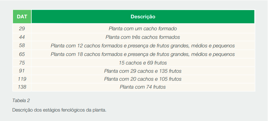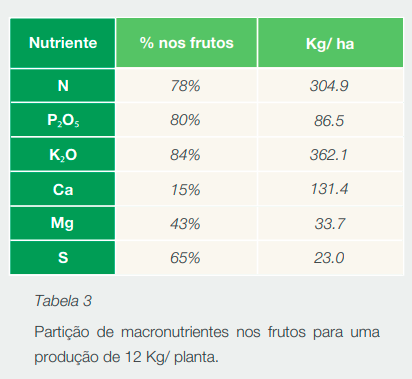 Finalmente, embora os dados obtidos neste experimento reflitam uma marcha de absorção obtida em condições experimentais, há a necessidade de inferir o comportamento desta curva às condições de solo, manejo, qualidade de água e clima, específicos de cada local de cultivo.