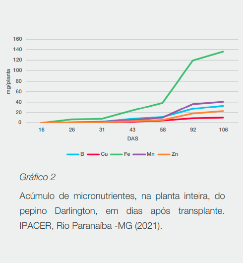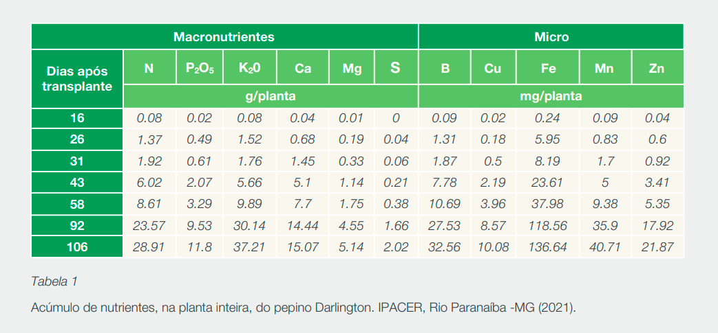 1. IPACER - Instituto de Pesquisa Agrícola do Cerrado. 2021. Curva de absorção do pepino Darlington – Março 2021. Rio Paranaíba, MG.
