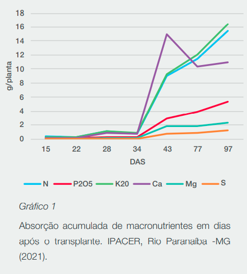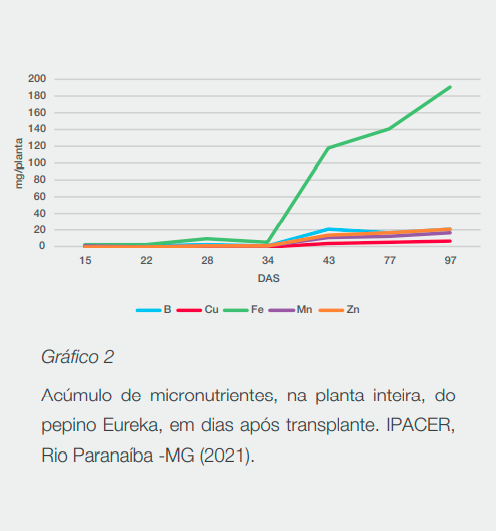 1. IPACER - Instituto de Pesquisa Agrícola do Cerrado. 2021. Curva de absorção do pepino SV3506CV – Março 2021. Rio Paranaíba, MG.