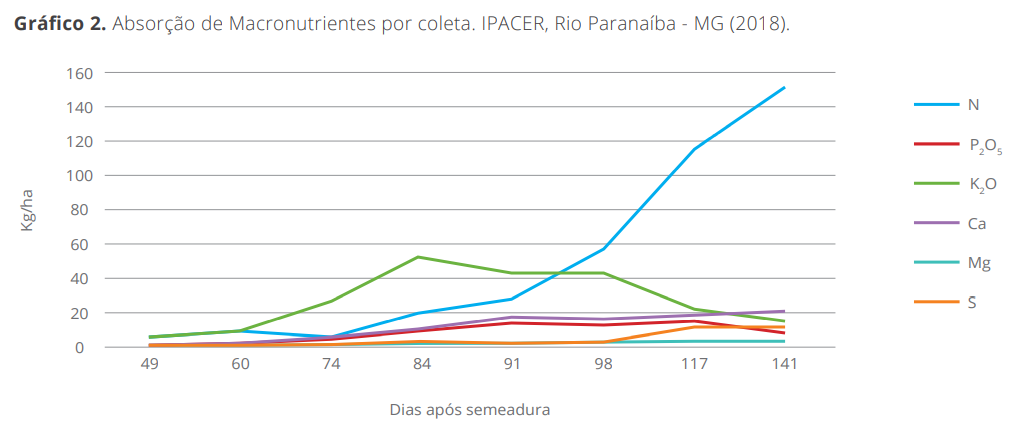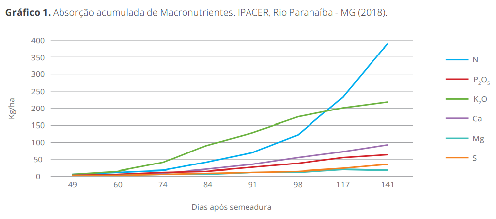 • O entendimento do padrão de absorção ao longo do ciclo é importante para a proposição do manejo correto e alcance da maior produtividade.