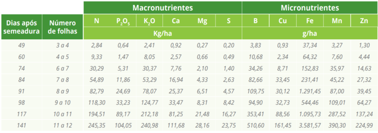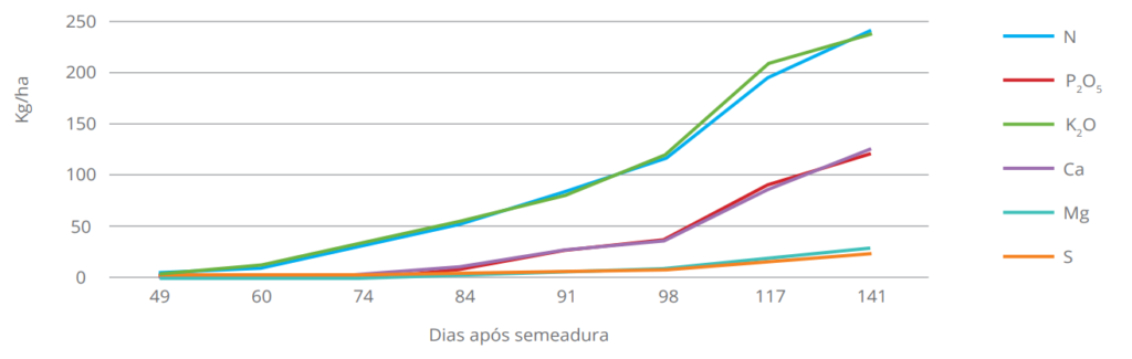 • O entendimento do padrão de absorção ao longo do ciclo é importante para a proposição do manejo correto e alcance da maior produtividade.