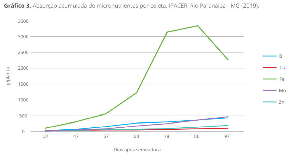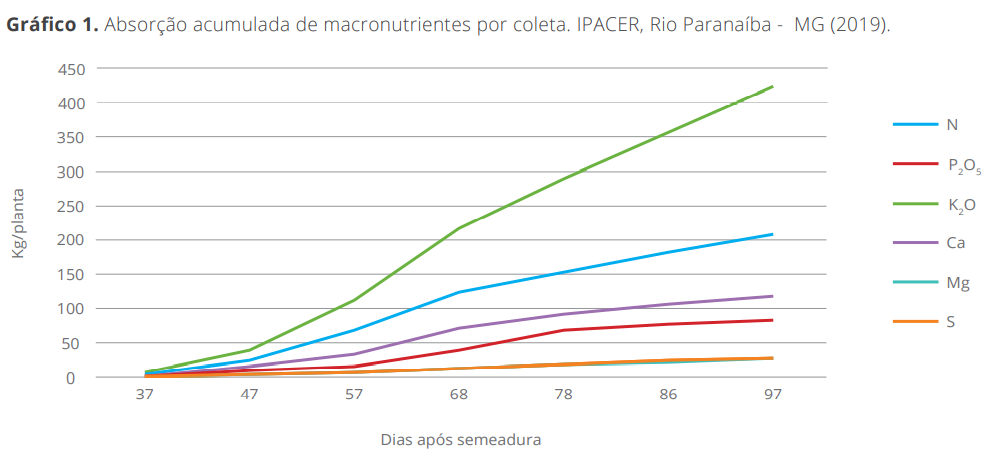 • O entendimento do padrão de absorção ao longo do ciclo é importante para a proposição do manejo correto e alcance da maior produtividade.