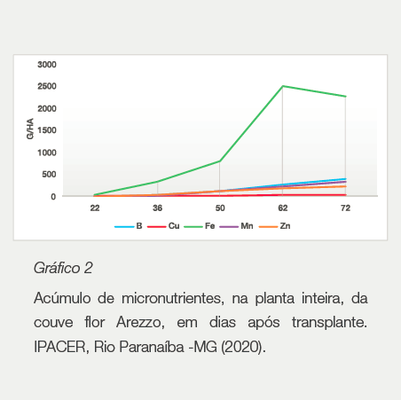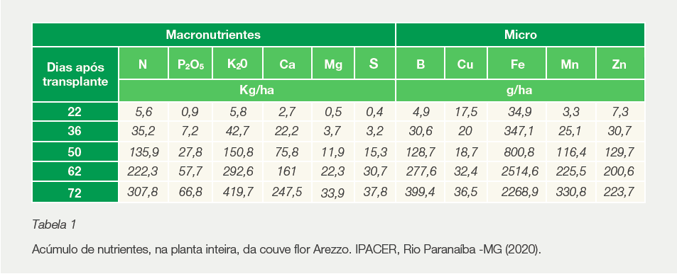 1. IPACER - Instituto de Pesquisa Agrícola do Cerrado. 2020. Curva de absorção da couve flor Arezzo – Setembro 2020. Rio Paranaíba, MG.
