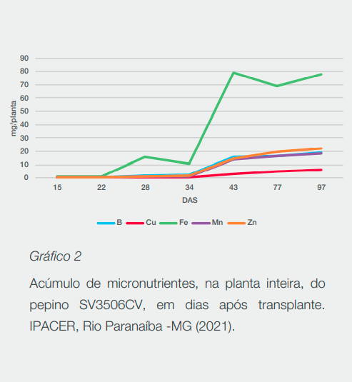 1. IPACER - Instituto de Pesquisa Agrícola do Cerrado. 2021. Curva de absorção do pepino SV3506CV – Março 2021. Rio Paranaíba, MG.