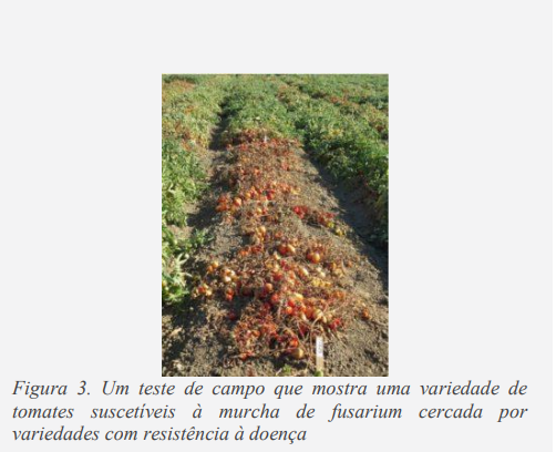 • A melhor maneira de manejo da murcha de fusarium é plantando-se variedades de tomate que sejam resistentes às raças do patógeno presente no campo.