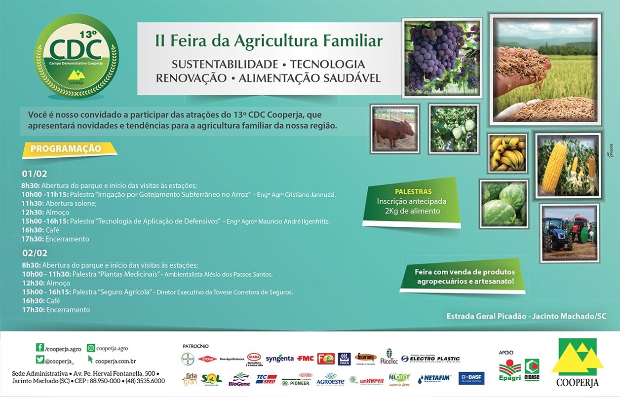 Nos dias 01 e 02 de Fevereiro, a Seminis, através da Tecseed, distribuidor exclusivo para os estados do Paraná, Santa Catarina e Mato Grosso do Sul, esteve presente no 13º Campo Demonstrativo Cooperjá (II Feira da Agricultura Familiar), na cidade de Jacinto Machado, estado de Santa Catarina.