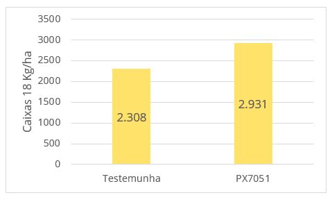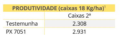 1 – Dados levantados pelas equipes de Desenvolvimento Tecnológico e Vendas da Monsoy LTDA. (produtos com a marca Seminis). Pode haver variação de produtividade conforme região, época de plantio, clima e manejo da lavoura. Dados obtidos em Carmópolis – MG (2013).