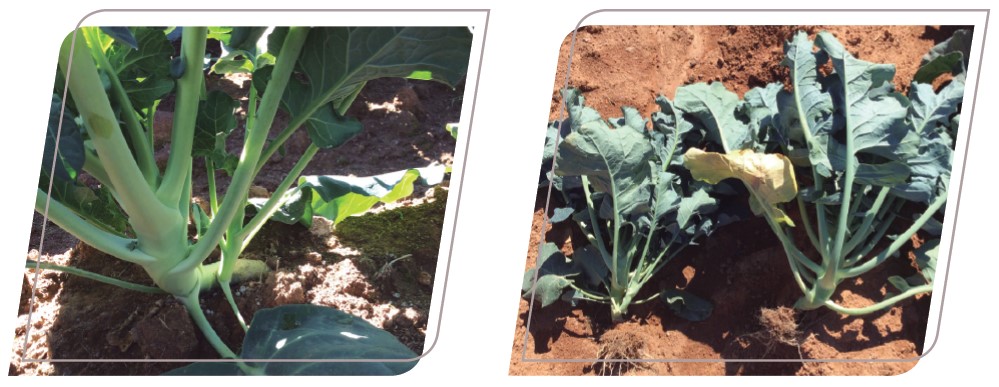 Sendo assim, o nível de brotamento lateral em brócolis é afetado fortemente pelas condições ambientais. Uma brotação lateral excessiva pode diminuir o tamanho da cabeça a ser comercializada, devido a competição dos ramos lateriais com o principal, e aumentar a incidência de doenças e insetos, já que o excesso de folha diminui a circulação do ar na planta e dificulta a penetração de produtos uniformemente.
