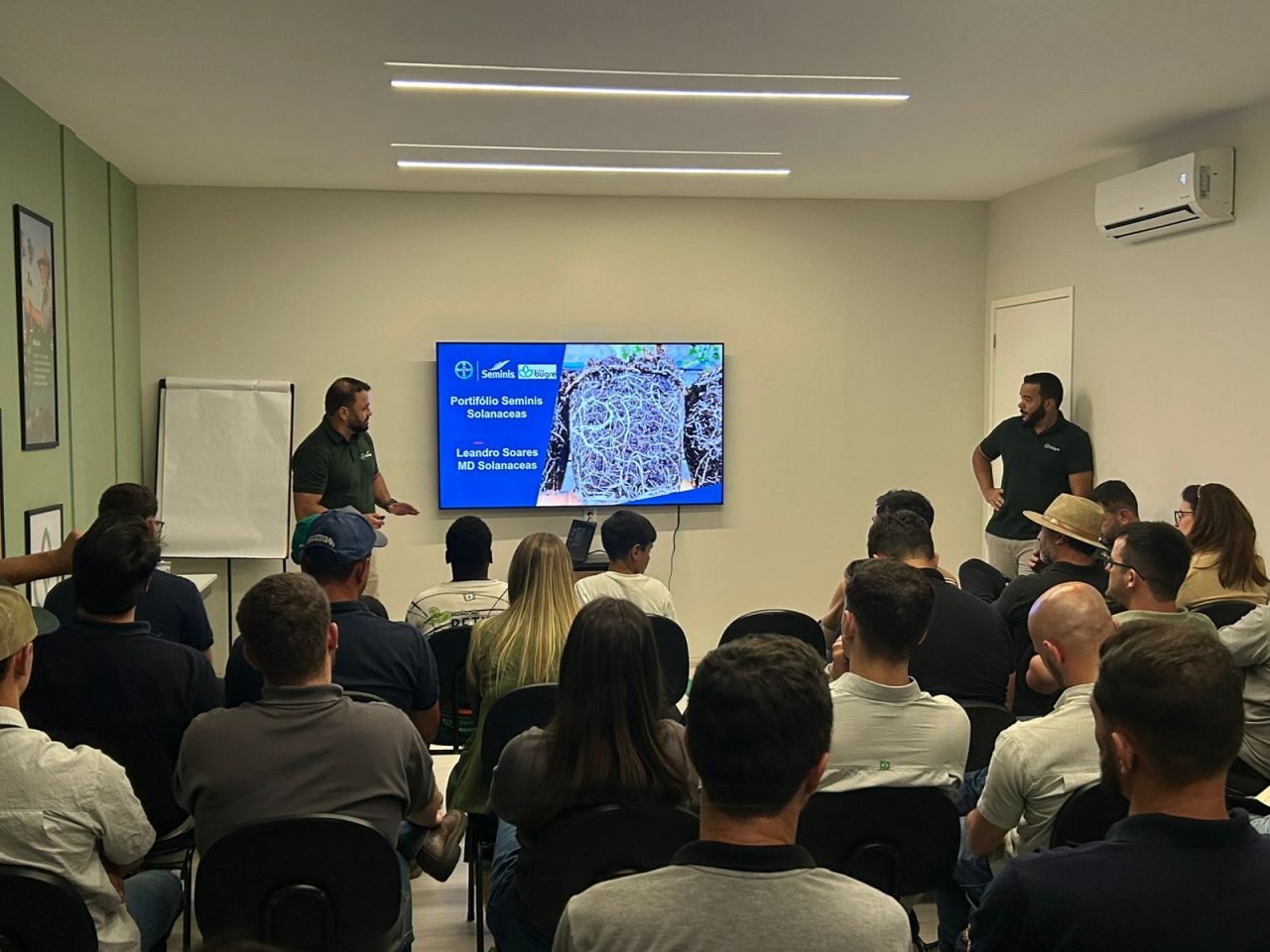 Ao longo da palestra, os participantes revisitaram desde fundamentos essenciais até temas de alta complexidade. Houve um mergulho na linha de tomates e porta-enxertos Seminis, destacando características agronômicas, potencial produtivo e o papel estratégico dos porta-enxertos na sanidade e longevidade das plantas.