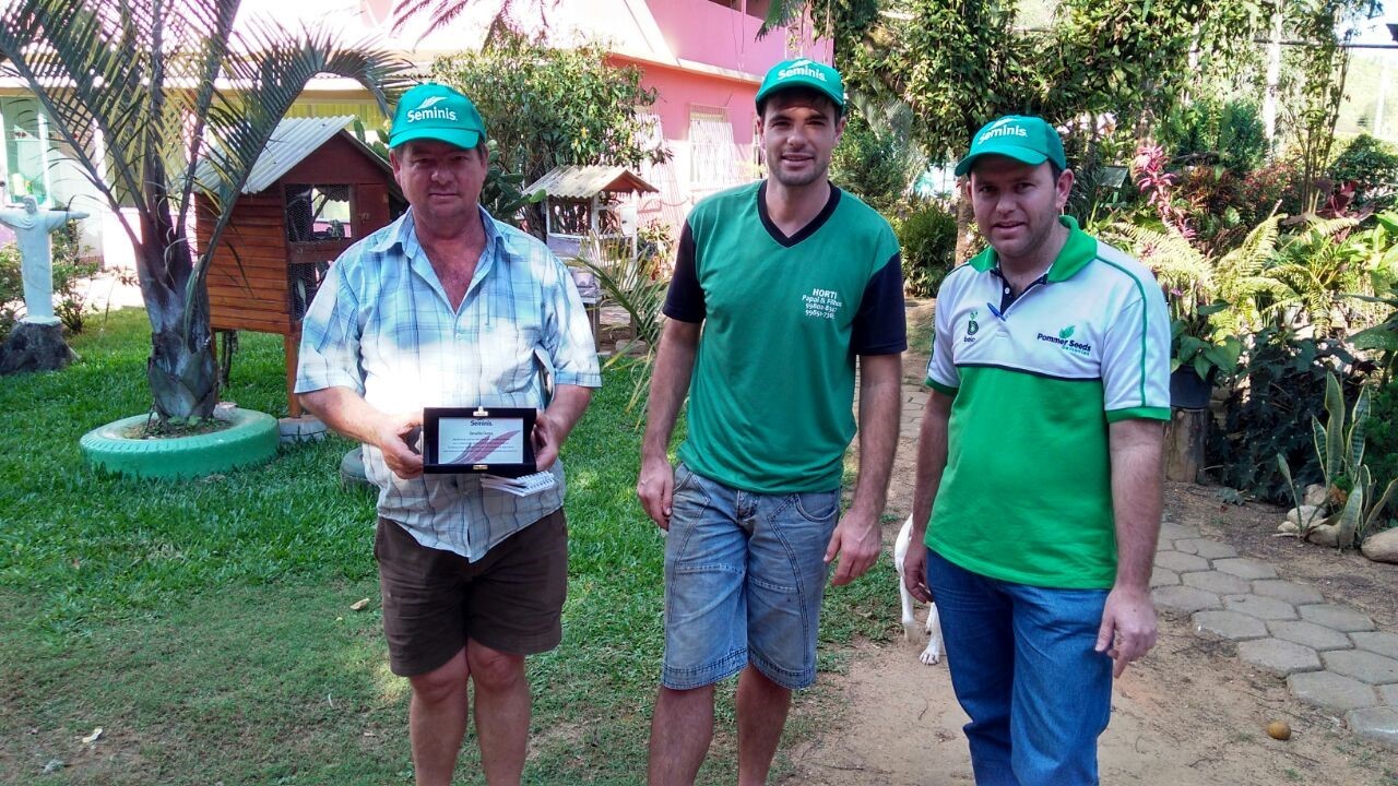 A entrega da placa foi feita juntamente com os parceiros comerciais da Seminis, na região de serrana de Santa Maria de Jetibá-ES.
