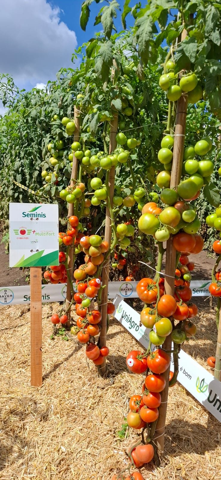 Durante o encontro, foram apresentadas linhas de tomate da Seminis, com destaque para os tomates Coronel e ComandanTY, além dos porta-enxertos Gumgang e MultiFort — soluções desenvolvidas para contribuir com mais produtividade, qualidade e resistência no campo.