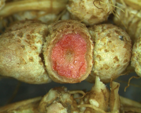 Figure 2. A pink color in the nodule interior indicates that active N-fixation is occurring.