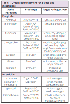 » Seed treatment insecticides and fungicides can protect yield potential from losses to onion pests and diseases.