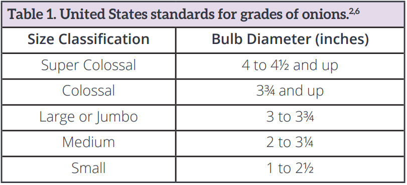 Desired bulb sizes and marketable classes vary by region, but generally marketable onions are those that fall in the medium to super colossal size classes, with the larger bulbs being the most valuable.2
