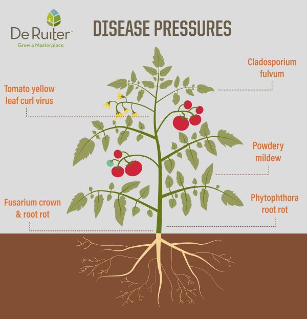 At De Ruiter™, we have been at the forefront of hybrid seed development and resistance breeding since 1946 and are building on our heritage. Today, we are vigilantly detecting emerging diseases around the world that can cause large-scale, economic damage, so we’re able to react quickly to develop new varieties with additional resistances. This ensures we can bring insights to our customers so they can have confidence in De Ruiter products. Below we’ve outlined a few important diseases and the dedicated innovation invested in De Ruiter seeds to help minimize pressure so our growers can grow a masterpiece.