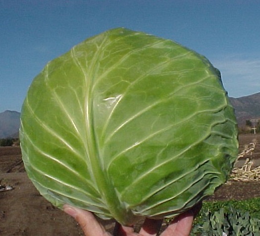 Repollo liso, muy uniforme con pesos promedio entre 3.5 a 4 kilos.