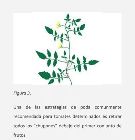 • En el caso de los cultivares de crecimiento determinado, la poda de brotes puede no ser necesaria y dar lugar a un menor rendimiento.
