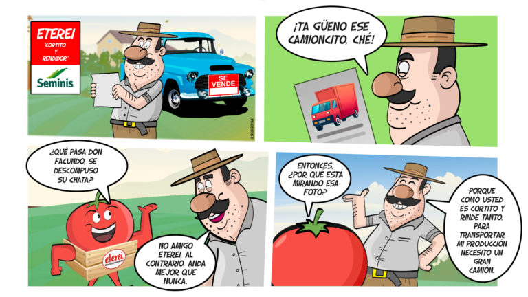 “Muy buen Tomate, firme y con excelente calibre”, “Linda variedad, fácil de agarrar tamaño con poco fertilizante”, “Tomate firme y parejo, en el mercado me dicen que se vende primero”, “Es la primera vez que lo pongo y voy a repetirlo el año que viene”, “Hice una hectárea de esta variedad y el año que vine hago toda la quinta”