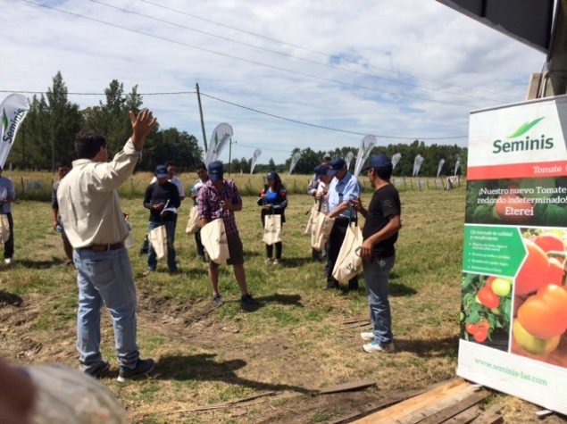 Nuestro nuevo tomate Eterei, que estará próximamente disponible para la venta, ya empieza a causar buenas sensaciones. Durante el mes de noviembre, alrededor de 250 agricultores asistieron a nuestra Unidad Demostrativa Hortícola en la Plata, Argentina, para ver el desarrollo en campo de este nuevo tomate Seminis. Durante el evento, también se promocionó el pimiento Linus, otra de nuestras variedades que se da muy bien en la zona.
