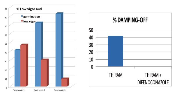 TRATAMIENTO 3: Plantas fuertes, de excelente uniformidad, germinación y vigor, sin daños de penicillium o insectos.