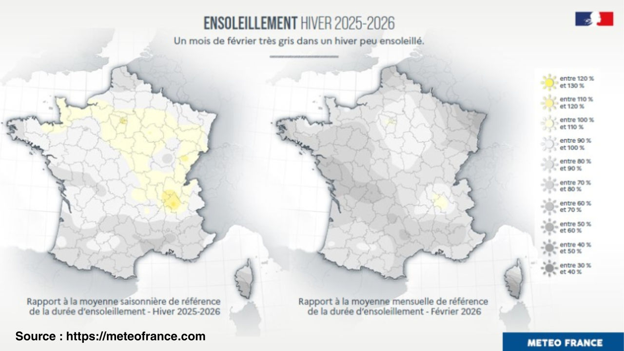 Cette saison, dans le sud, plusieurs producteurs l’ont sélectionnée sur des dates de plantations allant de début novembre à janvier, principalement greffées sur DR0141TX et Equifort. Depuis le début de saison, le sud a subi un grand déficit d’ensoleillement, entre - 20% à - 30% par rapport aux normales (voir carte Météo France).