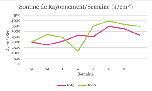 Au niveau d’ensoleillement, il y a eu 12% de plus en comparaison à la même période la dernière campagne.