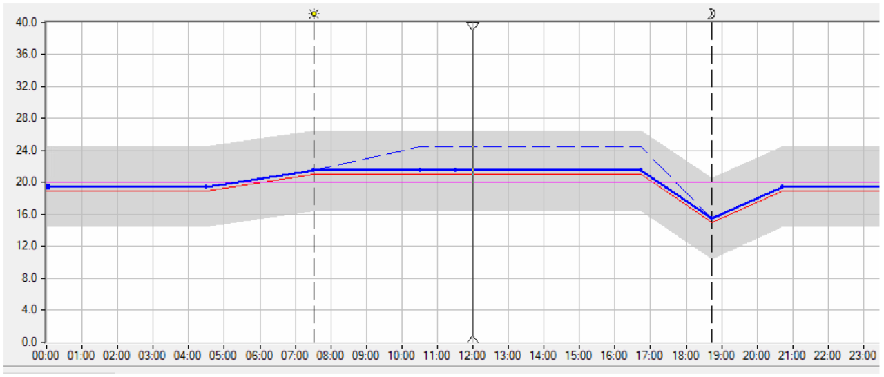 Le climat est réglé comme indiqué dans le tableau ci-dessous. Une petite « pré- nuit » donne un geste génératif, mais « pas agressif » pour assurer un écart de température jour/nuit (5°C minimum)