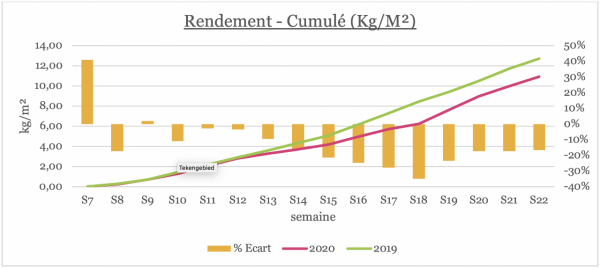 En semaine 22, l’ensemble des plantes est arrivé au stade F24.3 (2 bouquets de retard versus N-1).