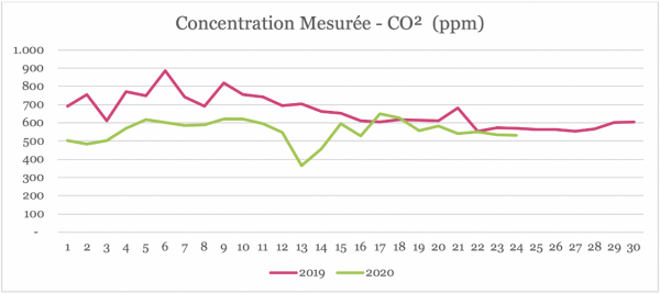 - <200ppm de CO² en moyenne en journée en Avril
