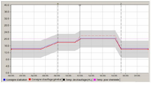Pour maîtriser l’augmentation de température et humidité dans la serre, la consigne d’aération est toujours 0.5DegC plus élevée que la consigne de chauffage.