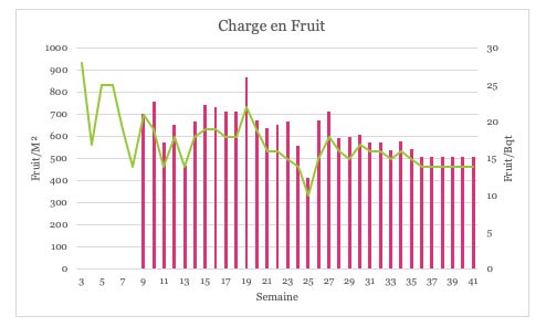 A l’approche de la fin de saison, la priorité sera de maintenir la qualité des fruits pour garder la fermeté et éviter l’éclatement. Pour cela, il faudra maitenir un climat actif et augmenter les objectifs d’EC de drain (5.5ms). L’effeuillage de la plante suivra la récolte (ratio 2.25 feuilles/bouquet) et sera arrêté 2 semaines avant la dernière récolte.
