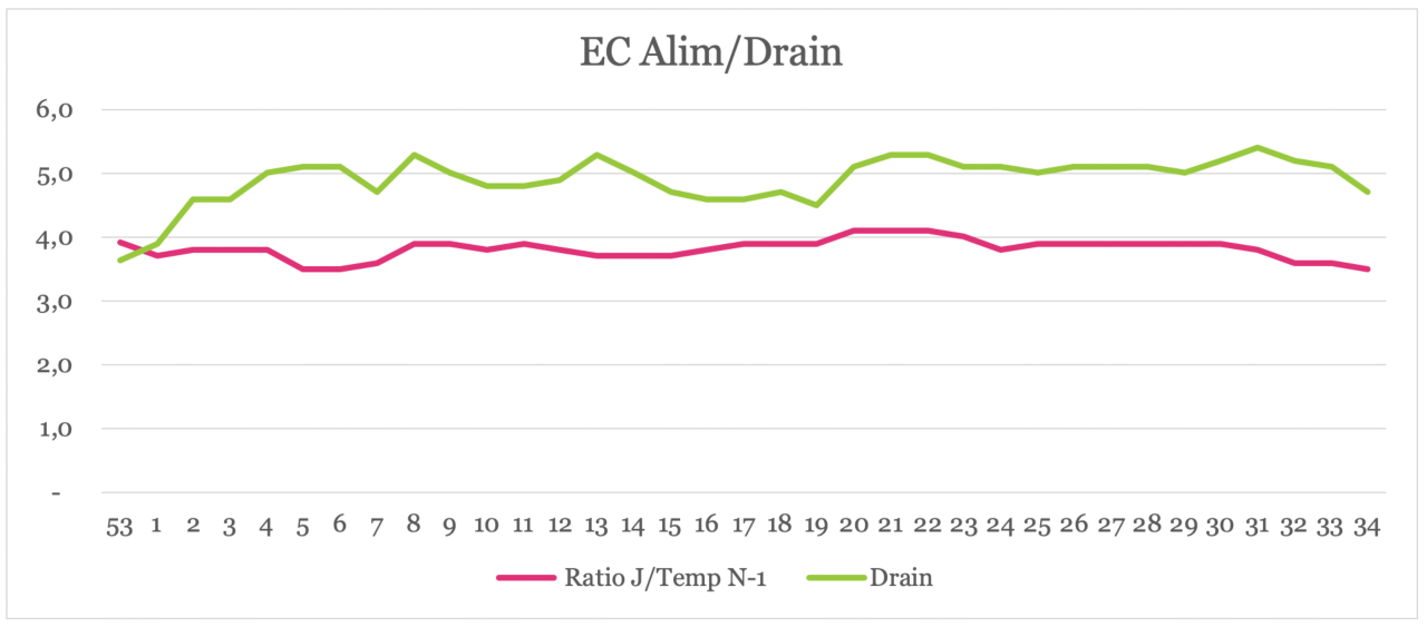 Le tableau ci-dessous donne les EC apport ainsi que les EC du drainage depuis le début de l’année.