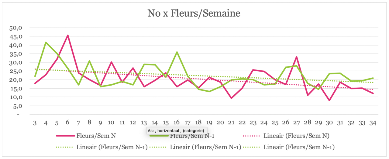 La diminution des fleurs/semaine nous montrait bien l’impact d’avoir moins de lumière/CO².