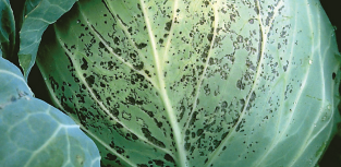 Leaves of cabbage, cauliflower and broccoli infected by the cabbage black ringspot strain of TuMV have 2-5 cm (¾-5 in.) of circular, light green lesions, which can best be seen on the abaxial leaf surface. Later, these lesions turn necrotic and may coalesce, resulting in large necrotic areas, which lead to defoliation. In cabbage, the outer leaves may develop necrotic spots that can occur throughout the head. In Chinese cabbage, symptoms manifest as vein necrosis and necrotic spotting of head leaves and are often on one side of the plant. In turnips, radishes and mustard, leaf distortion, blisters, mosaic and stunting are commonly seen symptoms with any strain of the virus.