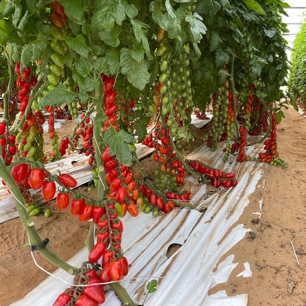 La varietà di pomodoro datterino SVTC0014 è ideale per il ciclo autunno/invernale, con trapianti da agosto a febbraio. La pianta, di tipo generativo con internodi corti, produce frutti allungati, resistenti alle spaccature e di un colore rosso brillante. I frutti si caratterizzano generalmente per l’elevato grado Brix e la buona conservabilità, che offrono gusto piacevole e buona consistenza. Il grappolo è elegante e uniforme, con rachide carnoso a sostegno dei frutti. SVTC0014 offre inoltre una Resistenza Intermedia al Virus della rugosità bruna dei frutti di pomodoro (ToBRFV).