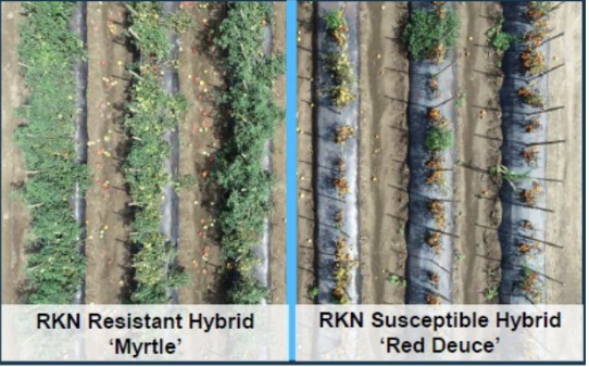 RKN populations can be significantly reduced by planting a resistant variety, resulting in less crop damage and increased yields in areas of high RKN pressure.