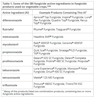 While DMI fungicides all inhibit ergosterol production, the different active ingredients do so in different ways. Therefore, there can be large differences in the activity spectra of the various DMI fungicides.8 Therefore, it is important to carefully select the appropriate DMI component of a fungicide product intended to be used against a given pathogen to help successfully manage the disease.