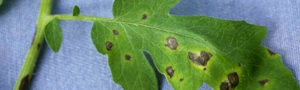 Este hongo se presenta durante climas cálidos y los síntomas aparecen en hojas, tallos y frutos como pudriciones y manchas oscuras con forman irregular y anillos concéntricos formados por esporas rodeadas con un halo amarillento.