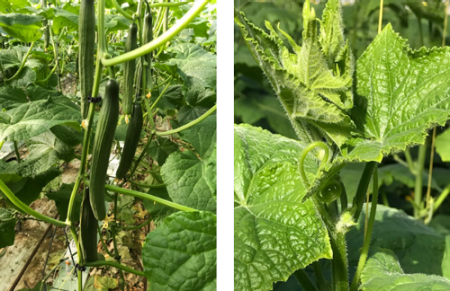 De scheutgroei is bij de plantingen van ½ juni in de meeste gewassen nog sterk en door de lage nachttemperaturen zijn de vruchten op de rank ook sterk (zie foto). De overgang van de stam naar de rank is door het minder weer slechter dan vorig jaar. Een gaatje van enkele dagen komen we overal wel tegen. De secundaire groei is vaak te ver ontwikkeld ten opzichte van de hoofdrank.