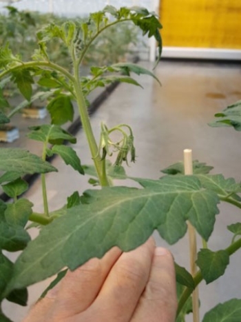 Komt de plant juist vanuit een zwak generatieve stand kan er direct veel meer belicht worden. Vervolgens moet het etmaal ook hoog genoeg gerealiseerd worden. Dit is een ideale situatie. De nacht temperatuur kan laag ingevuld worden bij gewassen waar de grofheid nog te wensen over laat. Bijvoorbeeld voornacht 14 en nanacht 16 oC. Een andere manier om generatief te sturen is het opstoken met de lampen. Er komt dus voorafgaand aan de opstookperiode geen buis in. Je voorkomt hiermee ook rek, lengte groei en de tros blijft korter en sterker.