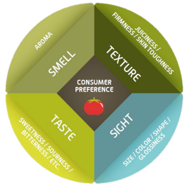 "Smaak en voorkeuren zijn regionaal en specifiek per land - zelfs buurlanden zoals Nederland en Duitsland en landen in Scandinavië hebben elk een duidelijk verschil in voorkeur als het om tomaten gaat", aldus Aurélie Lamotte, een verkoopmanager voor van groentezaden van De Ruiter in Noord-Europa. "Smaakcomponenten zoals textuur, smaak, aroma en uiterlijk zijn zeer complex en zijn onderling op zeer interessante wijze van elkaar afhankelijk als het gaat om de voorkeur van de consument."